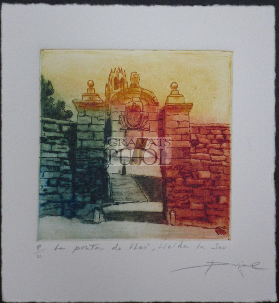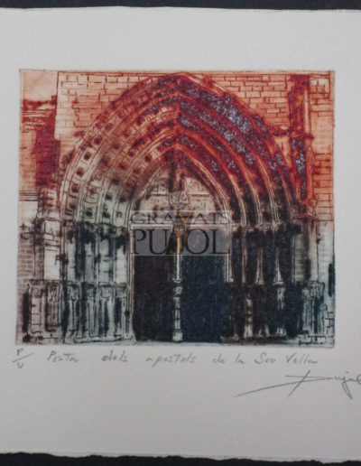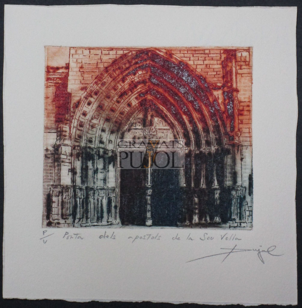 Lleida Grabado Original Porta dels apòstols de la Seu VellaMedidas: 15×16 cm La Seu VellaMedidas: 18×18 cm La Seu VellaMedidas: 15×16 cm Porta del Lleó, La SeuMedidas: 15×16 cm